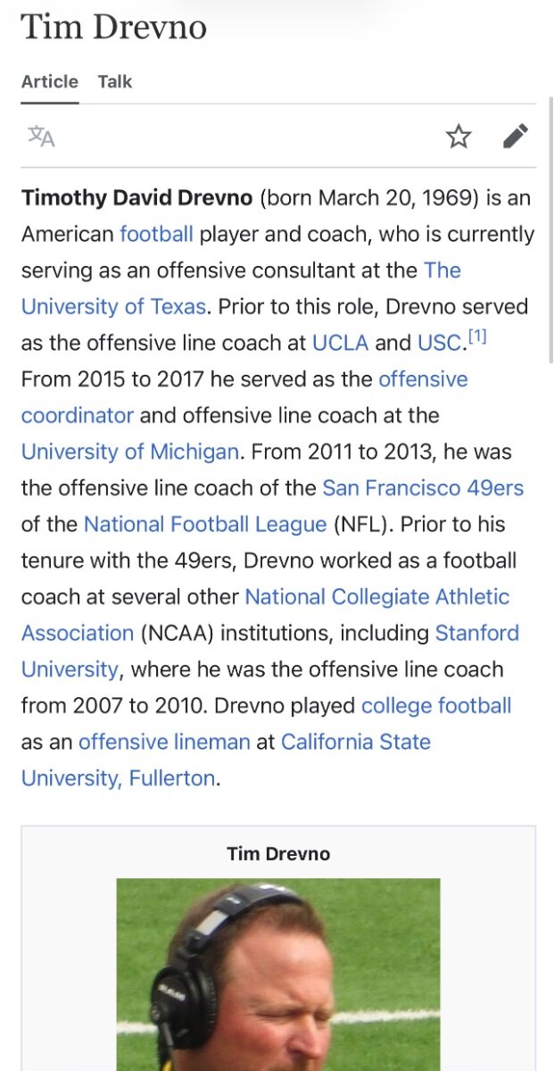 Being reported that Tim Drevno was hired as a consultant to help OL on 9/11 🤔. Has ties to Sark from USC worked under Harbaugh has a decent resume other places. Next OL coach in waiting or... Interesting very interesting!