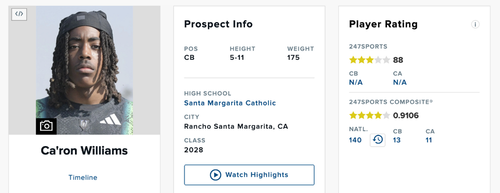 10. 2028 4-star CB from California Film: https://www.hudl.com/video/3/22639822/68be2b9cc61c168b949281f9