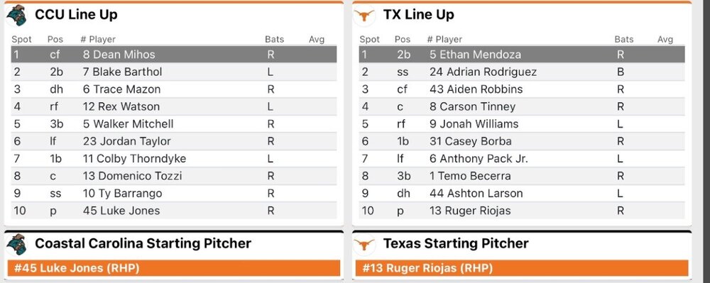 AndyLufkin started following Baseball Game Thread: No. 3 Texas vs. No. 9 Coastal Carolina