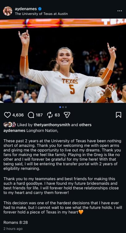 This is unfortunate, but I have to think we have some big plans in the portal if we weren’t willing to do what it takes to retain her. Hard to come by volleyball portal news, but I have been seeing some really successful and accomplished players enter the portal in recent weeks. @Blake Munroe Any intel on who we could pursue to replace Ames + others? - Yesterday
