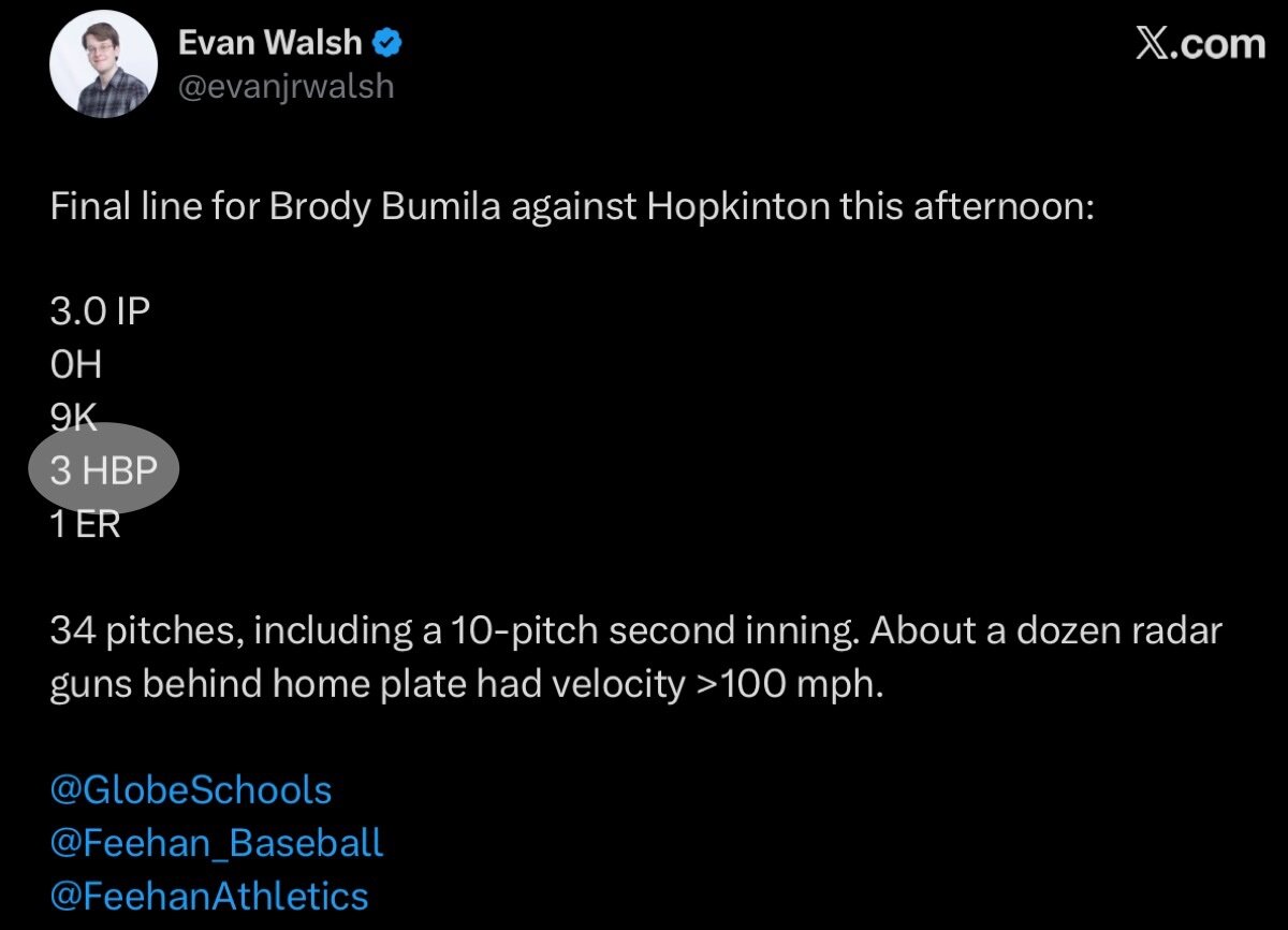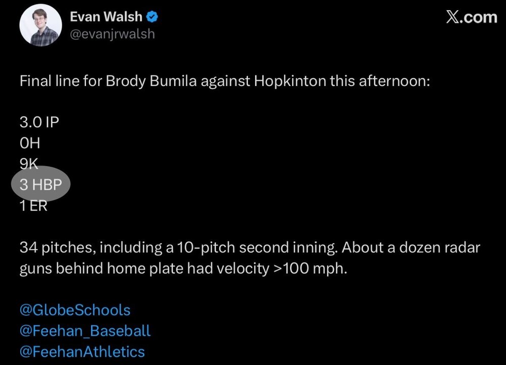 12. Throwing 100 mph in HS? Only a handful ever make it to school doing that. So we will see.
