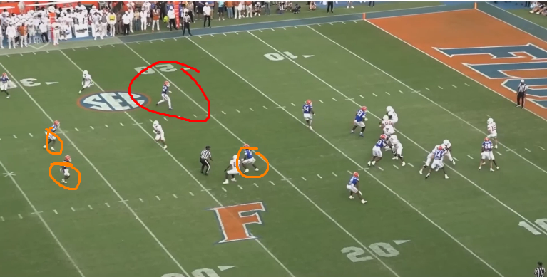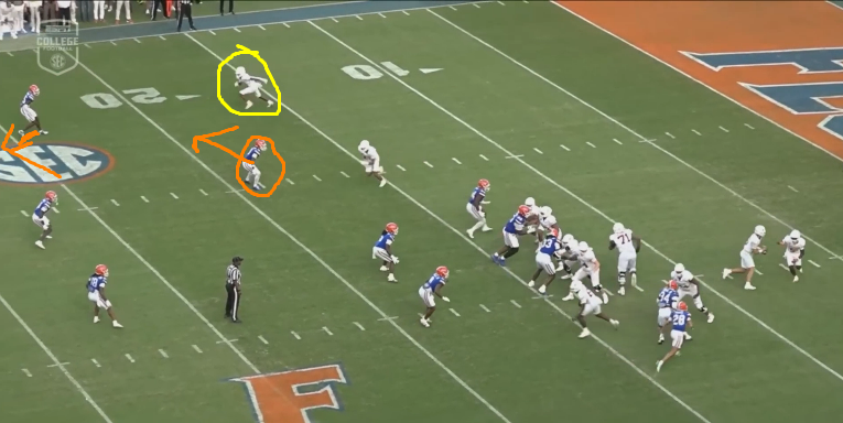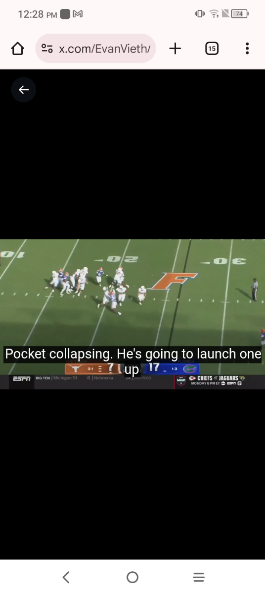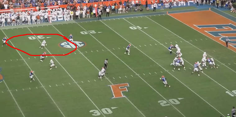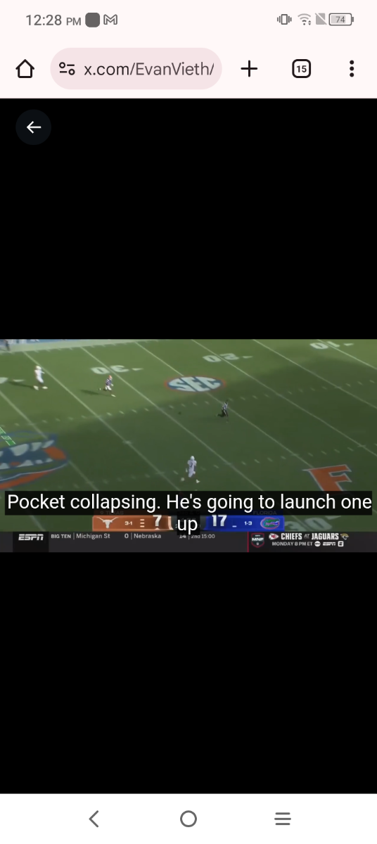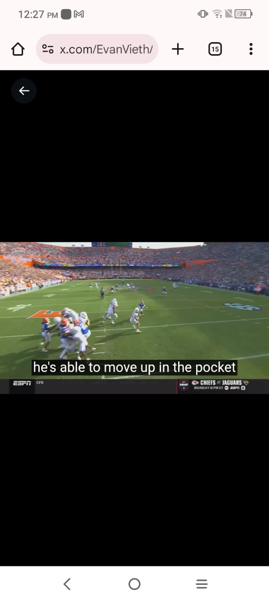 Here is the curl that Uncle Rico thinks is "covered" I'll show you why he's not in multiple picture format leading up to the hitch and when ball should be out. Beginning of play, Nickel is dropping to flats/numbers) At this point Arch should see on his initial read where he's looking that he has 4 defenders on 2, that isn't a recipe for success He's still looking at this concept even though it's covered, you will notice that the nickle dropped into a back pedal at this point Once he notices the 2 high safeties taking away the deep concept and the TE covered he should have immediately switched his POV to the hitch - IMPORTANT: He is not being pressured at this point, look at the pocket and how much time he has. ALSO IMPORTANT: the ball should be coming out to Wingo at this point of the screen shot with a wide open hitch, this is considered WIDE OPEN in the college game. You will also notice that the nickel is flat footed here so the chanced of him picking this off is slim to none. THE BALL SHOULD BE COMING OUT TO WINGO RIGHT HERE! His route is complete here but he still has defender up top bailing and the db underneath not in position 5 yards off, still think this could be a completion if thrown in this screenshot but not as open as the one above. This was on 2nd and 10, a completion to Wingo here gets a first down and some potential YAC with the defender up top bailing. Instead this ends with a sack for a loss of 5. -