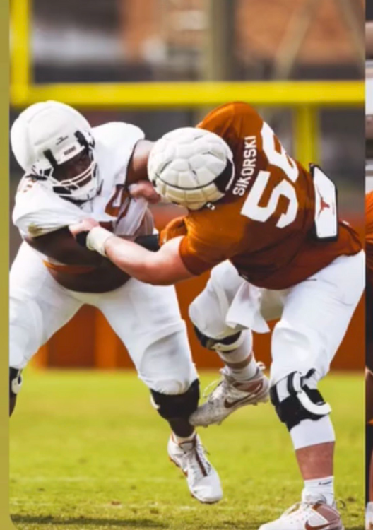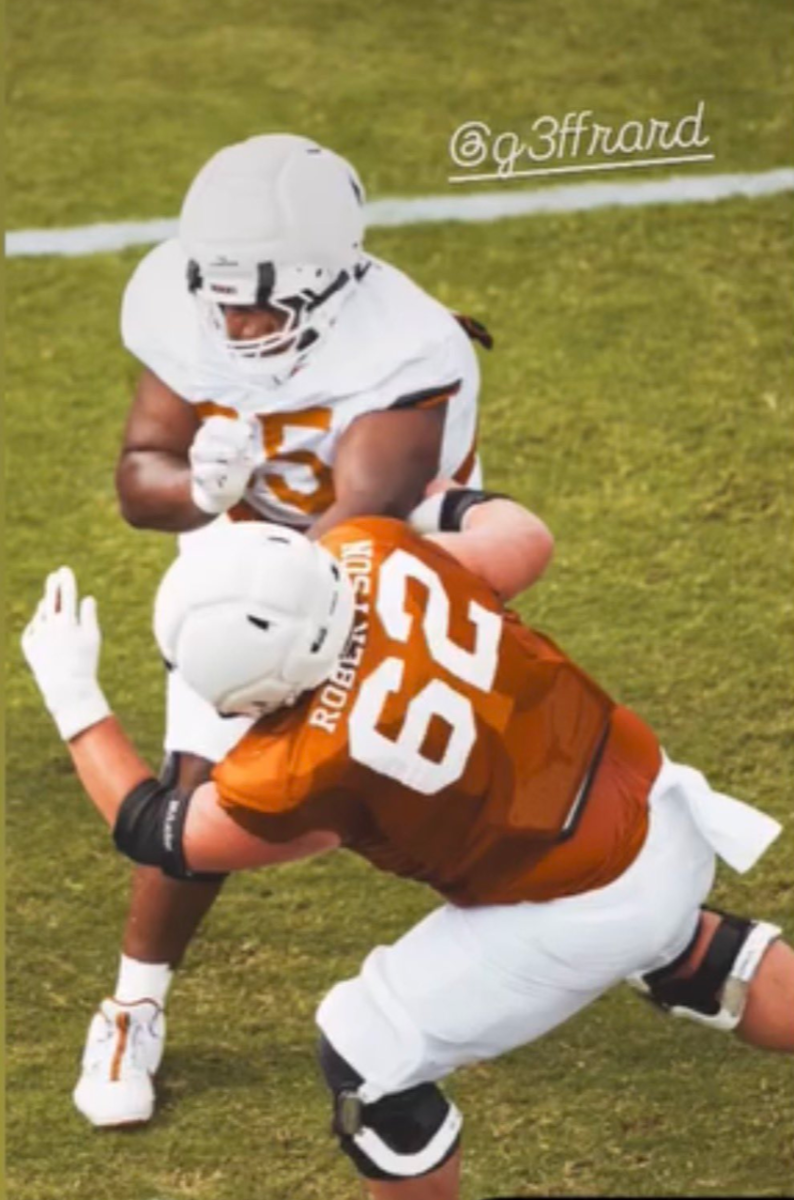 Saw these two photos on social and wanted to share. The 378-pound Geffrard looks like a handful to have to stay in front of. Going to be interesting to see how much his game improves now that he is not required to play 400+ snaps a season. Geffard was the 2nd highest graded Arkansas defensive player last year when the Horns stuck 52 on the Razorback D in 2025. In 14 pass rush snaps, he registered a pressured and QB hurry.