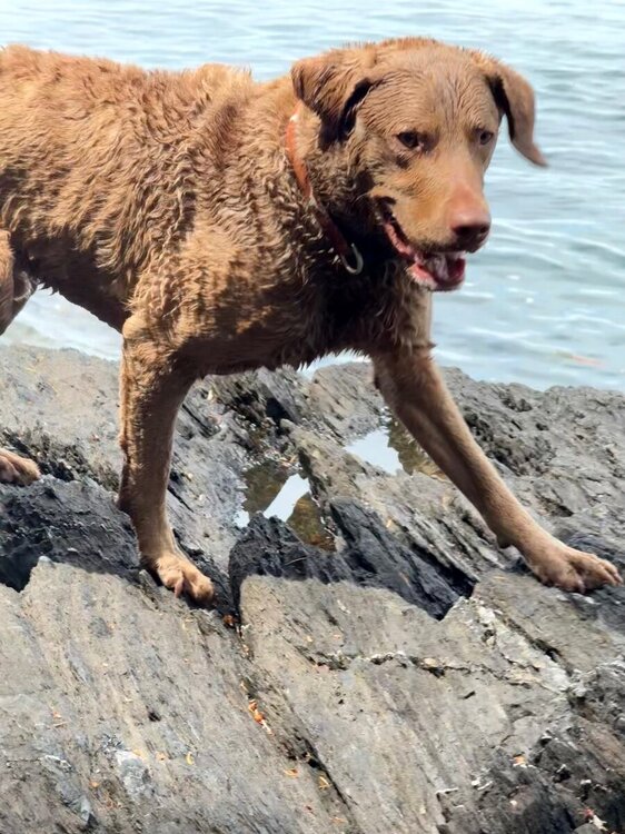 5. Reggie. 2 yr old Chesapeake Retriever. Came in Burnt Orange (ish)! Has his Longhorn collar on at all times. 🤘