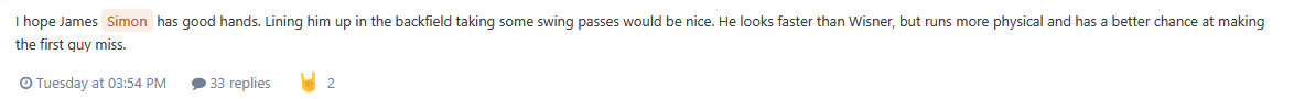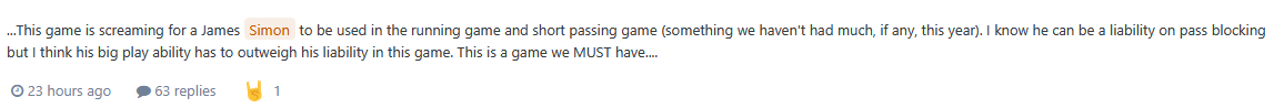 Simon is RB 1 when wisner isnt 100% though… We never hated Wisner, he just hasn’t been healthy at all this year. Hints why some of us called for someone like Simon to be RB 1 when we knew Wisner couldn’t fully be his effective self. And going Forward Simon is probably our RB 2.