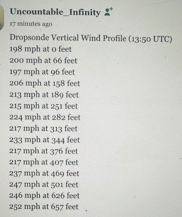 198mph winds surface level 252mph winds at 675 feet Incredible -