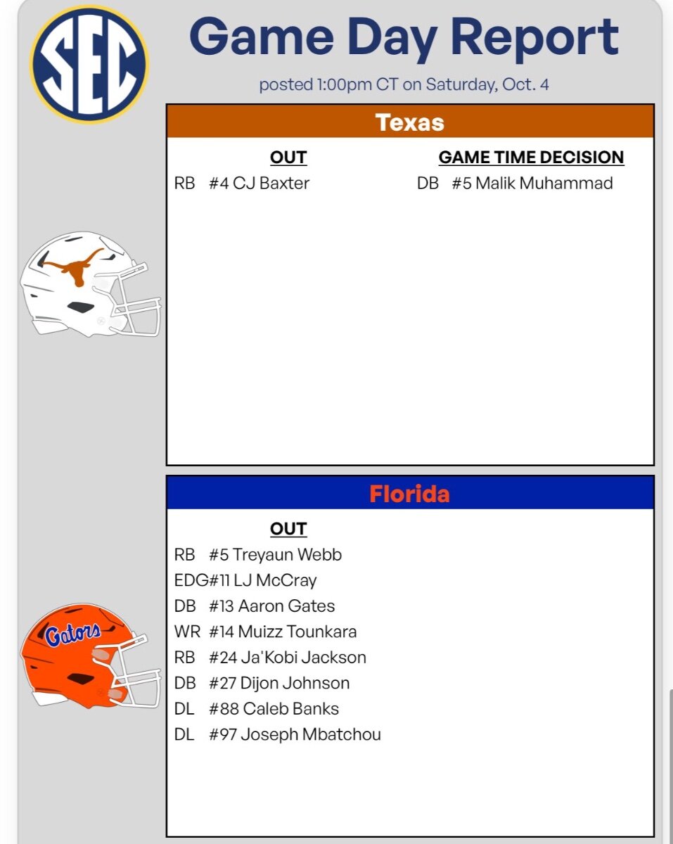 WR Tounkara was added to the OUT for Florida. -