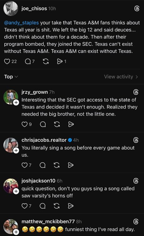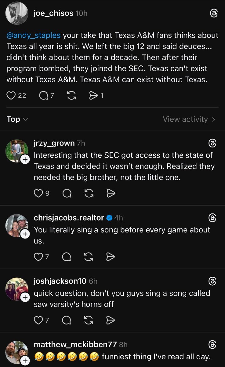 2. Seen the other day. This is likely going to be their first SEC championship game since joining in 2012. Texas made it in year one 😂 Texas exists just fine.