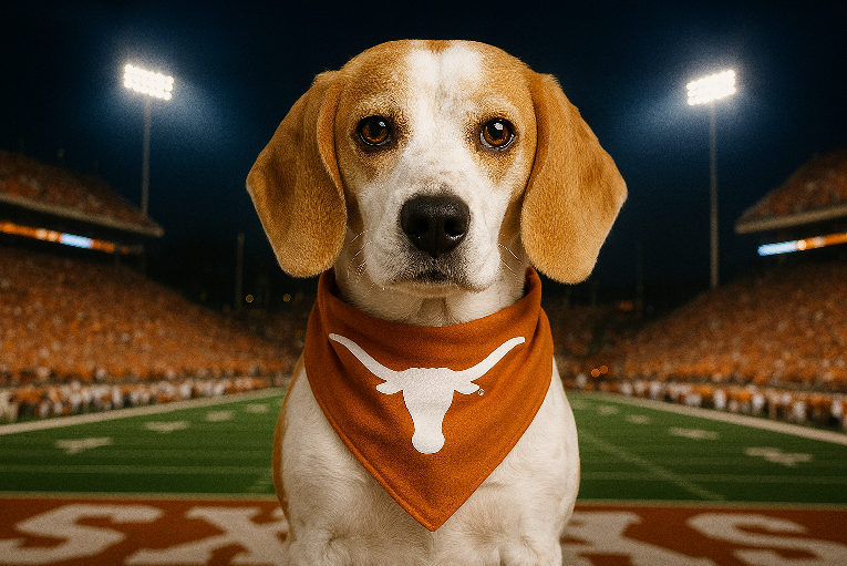 This is an AI generated pic I had Copilot make putting her in a Texas bandana at a night game at DKR.