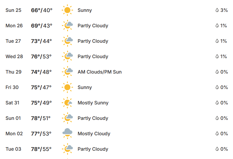 A little chilly here in the Arizona desert with 40 F for the low, mid-60's and up for the highs. Ten day forecast attached. Might have to skip wearing shorts early in the day. The cold front started a couple hundred miles east of here, so we're good - even have yellow wildflowers starting to bloom in the front yard. Sympathy for those getting hit by the ice especially - lived thru two days of -42 degrees F in northern Idaho one winter so even the weeks of 110 - 115 F in July and August are bearable by comparison. -