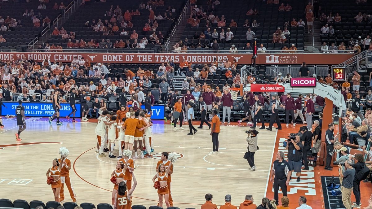 Moderators Jeff Howe Posted Saturday at 11:02 PM Author Moderators Posted Saturday at 11:02 PM Crowd is still filing into Moody Center. We'll see how much juice is in the building with the Christmas break putting a huge dent into the numbers in the Corral. 1 Quote