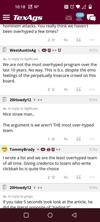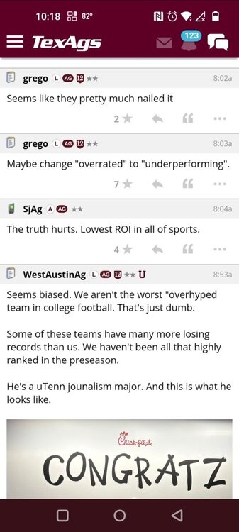 jonbailey Posted April 8 Posted April 8 29 minutes ago, HookemTexas said: They went from burn the program down to making a run at Omaha in the span of 24 hours after fake ut crapped the bed for games 2 and 3. No joke i went to lunch with an aggie who Friday said they need to raise funds for a buyout. Today he is convinced they make a run in Omaha. I am not aware of a fanbase more captured by their own media. Everyday they have new talking points like they are handed a morning briefing 2 4 Quote