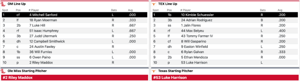 Moderators Jeff Howe Posted February 16 Author Moderators Posted February 16 Ole Miss put the ball in play against Harrison, but he retired the Rebels in order in the first inning. 1 Quote