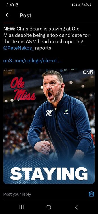 Moderators Jeff Howe Posted April 2 Moderators Posted April 2 If Beard to A&M crosses the finish line, I'd expect John Reilly, Bob Donewald Jr. and Mark Adams to follow him. Quote