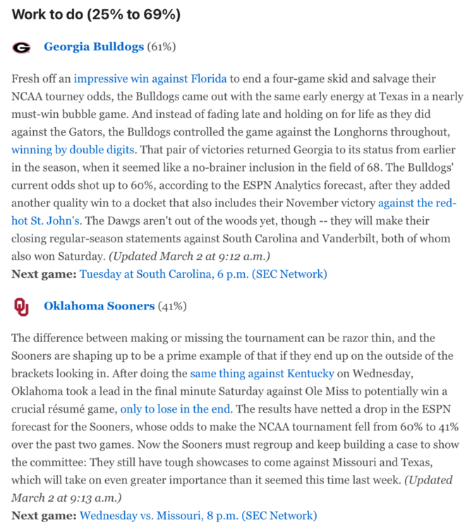 5. 3/5 Update Bubble Watch 2025: Conference locks for men's March Madness