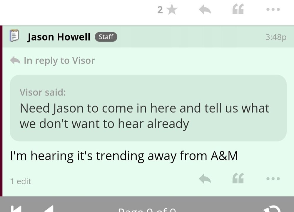 8. texags gave update about an hour ago, saying they are trending away from Fasusi