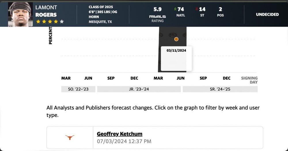 11. Seems like anyone could get Rogers 247: OU IT: A&M /Mizzou OB: Texas OTF: Texas/Mizzou OU Site: OU Again ima stick Gerry and OTF.