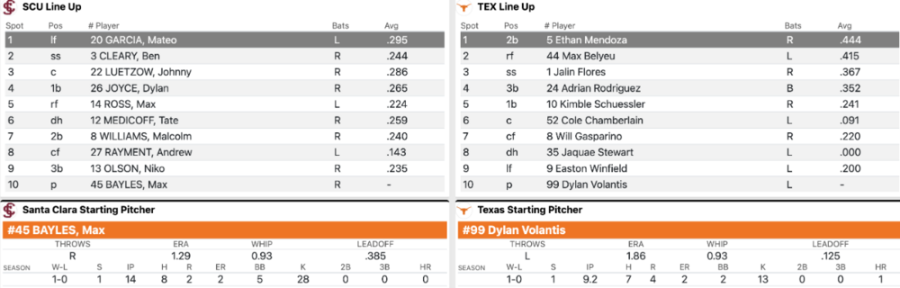 Baseball: No. 12 Texas vs. Santa Clara Game Thread (Sunday)