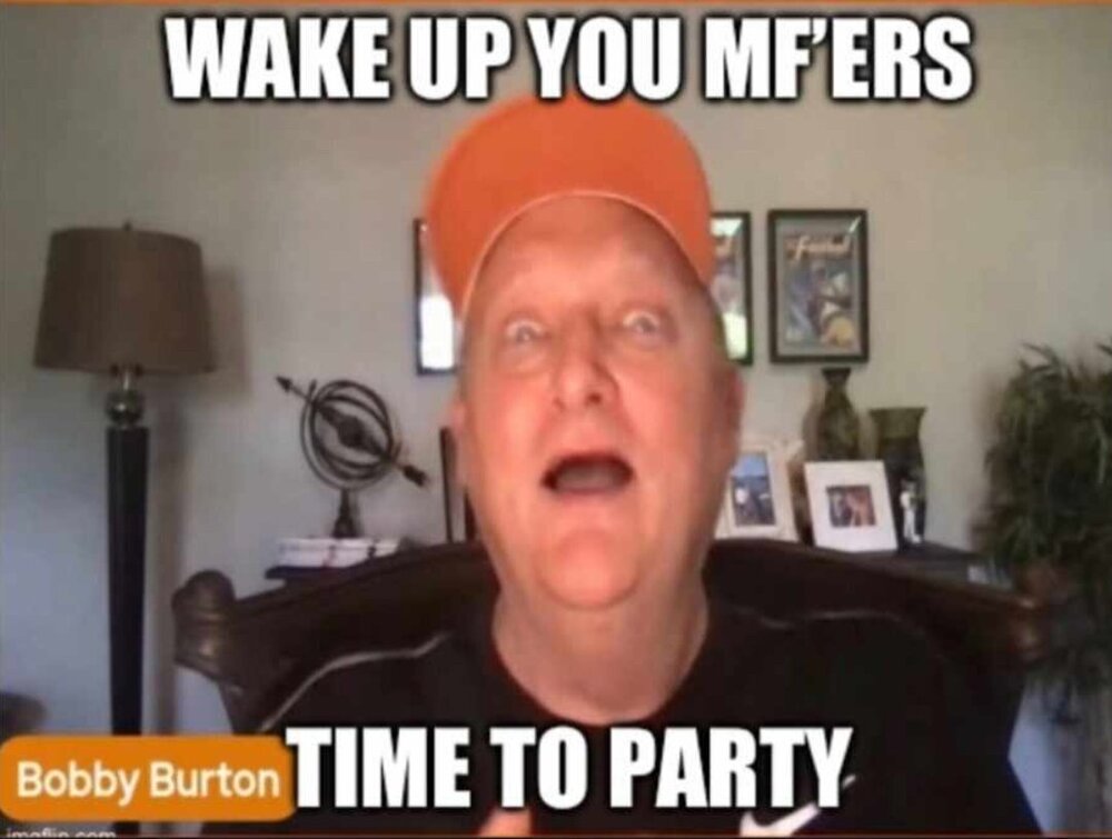 5. The one w Bobby that says wake up mf ers it’s time to party!